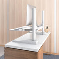 Winston-E Desk Beam raises and secures the monitor to the desk. Adjustable and easily rotated flat panel monitor for portrait or landscape viewing. It can be placed anywhere along with the Winston E-Desk posts.
