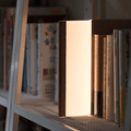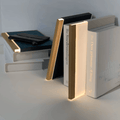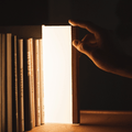 + Gives out ambient glow just by pulling it out like a book so you can find faded book titles in the dark or simply use it as a bedside light