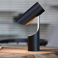 Le Klint is inspired by transformation and minimalistic geometry. It discreetly has the on/off switch attached to the cord, allowing this beautiful matt black table lamp to stand freely in its cylinder & when the black exterior is lifted, a more exciting and characteristic expression is unveiled, as the complimentary contrasting glossy white interior is switched on.