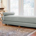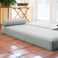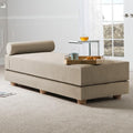 Crafted with a pair of supportive polyurethane foam platforms, the Alon Daybed is a cozy chaise and bench that doubles as a queen-size bed when unfolded. The elegant design of this sleeper daybed is elevated with beautiful lathe-turned maple feet that can be secured in a matter of seconds into a hidden wood base. The repositionable elastic strapped bolster complements the streamlined construction. The Alon Daybed is available in lush micro-velvets in an array of décor colors.