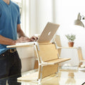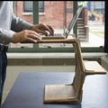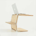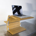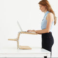 Stand while using your laptop or reading a book. There's room to store your phone, notepad, and a cup of coffee if that's how you roll. SD1, the original wood Standing Desk. There's room to store your phone, notepad, and a cup of coffee, if that's how you roll. The Standing Desk can be assembled into 3 recommended configurations (small, medium, large) by rearranging the two vertical panels and the shelf.