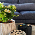 Depending on the purification or scent level speed, Moodo AIR ranges from 22 decibels (proportional to background in a very quiet rural area) to 60 decibels (proportional to a normal conversation). You can adjust the speed level using the Moodo app or the device buttons.