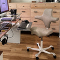 The HÅG Capisco 8106 is inspired by a horseback rider's posture. Its pioneering saddle seat and overall unique shape, offer endless ways to sit or half stand. All of which encourage you to vary your position, whether you're facing forwards, backward, or sideways. Whatever feels most comfortable next. For a more conventional seat an, chose the 8126 Round Seat version to exceed your expectations.