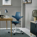 The HÅG Capisco Puls is inspired by a horseback rider's posture. Its pioneering saddle seat and overall unique shape, offer endless ways to sit or half stand. All of which encourage you to vary your position, whether you're facing forwards, backward, or sideways. Whatever feels most comfortable next.