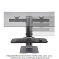 Winston-E is a responsive powered riser that takes the sit-stand conversation to a whole new level. The next-generation retrofit work surface with monitor arms is engineered for freedom of movement. This workstation offers a single monitor mount and 18″ of effortless height adjustment. Installers can get Winston-E from box to up-and-running in less than 20 minutes. No need to move or replace furniture.