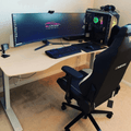 + The elegant and spacious contoured desktop provides ample space and comes with grommets for cable management. The carving allows you to sit closer to your essentials.