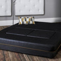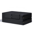 + Features multiple configurations from a modern coffee table, backless bench, stable workstation or meeting space, a mattress when laid flat for a space-saving guest bed, or a movie night cuddle spot