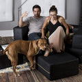 Since it's crafted from a highly durable and lightweight foam, each of the stylish elements of the Zipline Loveseat is easy to maneuver. With the flick of a wrist, you can stack the ottomans into the seat to create a platform for additional seating, or create convenient end tables. Design your own seating situation and use the matching ottoman as a footrest. The Zipline Loveseat is a great addition to any home office environment too. Simply stack the ottomans on the sofa, and you’ll have a stable workstation or meeting space at your disposal. When all the work is done, catch up on your favorite shows on a cozy platform by simply folding out the sofa and tucking in the ottomans.