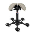 Swing: The 360-degree seat motion strengthens your deep core muscles and increases metabolism. Salli saddle chairs with fluid seat motion are suitable for most folks of average build. Unfortunately, the swing motion often does not work for those with anatomical characteristics at the ends of the bell curve (e.g., petite, big, generous hips or thighs, etc.). In those cases, the user’s body weight may not center over the axis of motion under the seat, which interferes with the seat’s ability to follow the body’s movement. The end result can be poor body postures.