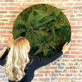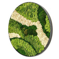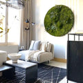 Moss Circles provide a compact way to add a green wall to your space. These circles fit into any interior design and can be customized with different frame choices and moss designs.