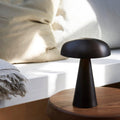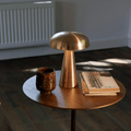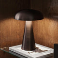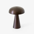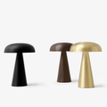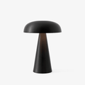 Como's sturdy base is crafted from anodized aluminum tapers towards a soft curved, mushroom-shaped shade. This battery-powered lamp can operate for eleven hours at the highest setting and be recharged using a magnetic USB cable or a charging tray.