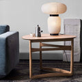 Materials: Rice paper shade; black lacquered oak veneer bands; the base of solid oak wood; fabric-covered cord