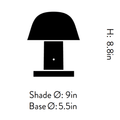 Product Dimensions: Base: 5.5 "Ø; shade: 9 "Ø; total 8.8 "H