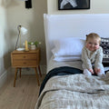 The classic Hector 30 is updated for the company's 30th Anniversary with beautiful satin brass metalwork that compliments the bone china wonderfully, adding a further touch of warmth to the Hector range. Available as a table, floor light, and wall light (with and without a switch) with grey braided cable.