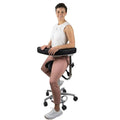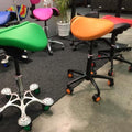 Swing: The 360-degree seat motion strengthens your deep core muscles and increases metabolism. Salli saddle chairs with fluid seat motion are suitable for most folks of average build. Unfortunately, the swing motion often does not work for those with anatomical characteristics at the ends of the bell curve (e.g., petite, big, generous hips or thighs, etc.). In those cases, the user’s body weight may not center over the axis of motion under the seat, which interferes with the seat’s ability to follow the body’s movement. The end result can be poor body postures.