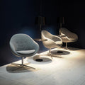 Kokon Club has a modern spirit that is unlike traditional recliners. It supports your body within its natural state by incorporating a gentle tilting function in the base. The soft lines of the chair showcase its sophisticated design without compromising comfort. This soft yet structured chair assists in pure relaxation. Kokon Club has an aluminum base and is available in a range of different fabrics and colors.